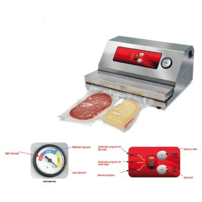 Μικρό, επαγγελματικό, ημι-αυτόματο, πολύ ευέλικτο και εύκολο στη χρήση. Ιδανικό για οικιακή χρήση και εστιατόρια - delicatessen. Συσκευασία με σακούλα vacuum γκοφρέ.