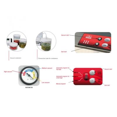 Μικρό, επαγγελματικό, ημι-αυτόματο, πολύ ευέλικτο και εύκολο στη χρήση. Ιδανικό για οικιακή χρήση και εστιατόρια - delicatessen. Συσκευασία με σακούλα vacuum γκοφρέ.