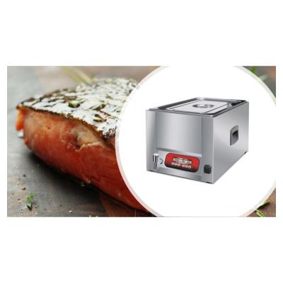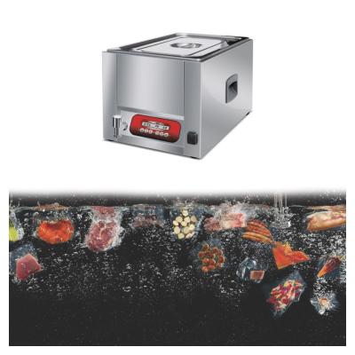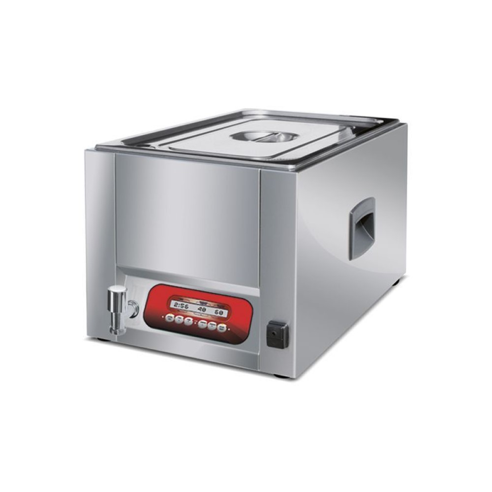 Αργό βράσιμο εν κενώ στο νερό. Η συσκευή μαγειρικής Sous vide είναι μία μέθοδος όπου το προϊόν έχει συσκευασθεί σε vacuum, του έχει αφαιρεθεί ο αέρας και «βράζεται» σε χαμηλή θερμοκρασία σε νερό μέχρι 85°C με απόκλιση 0,5°C. Το προϊόν δε χάνει τις βιταμίνες του και τη γεύση του. Κρατάει τη θερμοκρασία σταθερή και ομοιόμορφη, προσφέροντας καλύτερο μαγείρεμα του προϊόντος. Η αντίσταση είναι απομονωμένη για να μην έρχεται σε άμεση επαφή με το νερό. Το σύστημα έχει βρύση για να αφαιρείται το ζεστό νερό. Μαγειρεύει συσκευασμένα προϊόντα από το Vacuum. O εξωτερικός κάδος έχει λαβή για τη μεταφορά του και ηλεκτρονική ρύθμιση της θερμοκρασίας. Ανοξείδωτη κατασκευή.