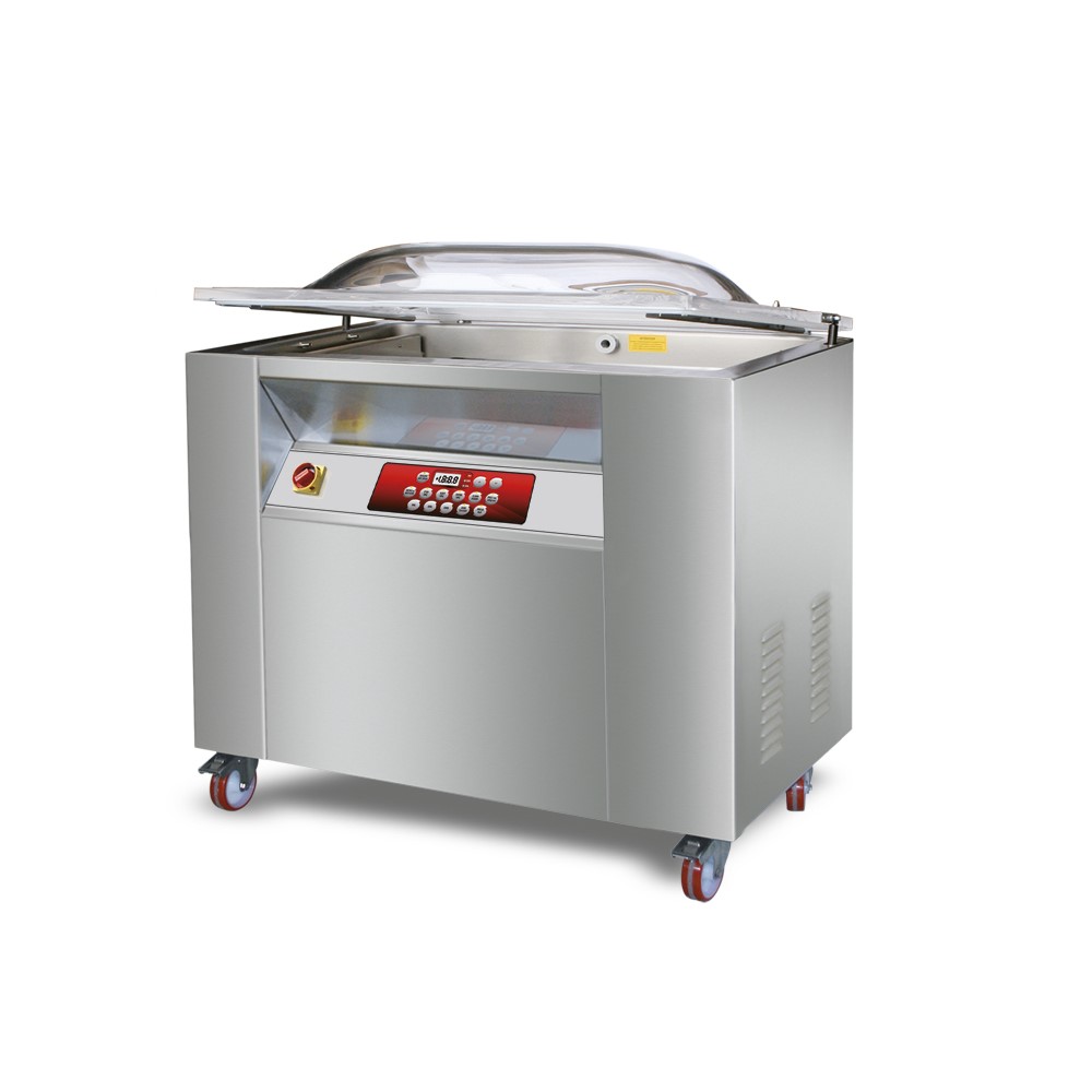 Γρήγορο, εύκολο στη χρήση, ανοξείδωτο ατσάλι, στιβαρή κατασκευή. Διάφανο καπάκι για τον έλεγχο της συσκευασίας. Στεγανοποίηση στο 99%, με 10 προγράμματα και πρόγραμμα για την συσκευασία υγρών. Θάλαμος κατασκευασμένος με στρογγυλεμένες γωνίες για εύκολο καθαρισμό. Διπλός αισθητήρας για στεγανοποίηση υγρών και αναρρόφηση vacuum. Mια μπάρα μεγάλου μήκους και πάχος 5mm. Επιλογές αντλίας θέρμανσης και αυτοκαθαριζόμενης αντλίας για να διατηρούνται οι αντλίες καθαρές και να λειτουργεί το μηχάνημα χωρίς βλάβες. Λειτουργία STEP VAC για τη συσκευασία υγρών. Λειτουργία SOFT VAC για ήπια στεγανοποίηση ώστε να μην καταστρέφονται τα προϊόντα. Πρόγραμμα για μαρινάδα κρέατος. Ιδανικό για καπνιστά λουκάνικα, κρέας, ψάρια, για συσκευασία ελιών, αλλαντικών κ.α. Απαραίτητο για τα ξενοδοχεία, τα εστιατόρια και κάθε επαγγελματική κουζίνα.