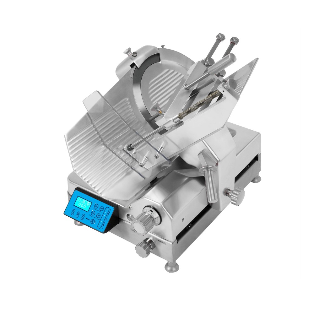 Διαθέτει πληκτρολόγιο αφής με οθόνη LCD και backlight, κατασκευασμένη από ανοδιωμένο αλουμίνιο και τμήμα αυτοματισμού από ανοξείδωτο χάλυβα AISI 304. Με ενσωματωμένο ακονιστήρι με ειδικό προφυλακτήρα που “κρύβει” τη λεπίδα του μαχαιριού κατά τη λειτουργία. Πρόσθετα μπράτσα σαργιού για συγκράτηση προϊόντων από το χειριστή. Έχει ρυθμιστή διαδρομής της πλατφόρμας. Εύκολη στον καθαρισμό. Μεταλλικός προφυλακτήρας σαργιού και μαχαιριού. Προστατευτικό κάλυμμα του κινητήρα και του ρελέ. Ο ηλεκτρικός μετρητής κόβει αυτόματα των αριθμό των φετών με φυσική βαρύτητα. Διαθέτει δύο κινητήρες. Ρυθμιστής πάχους φέτας 0-14 mm. Διακόπτης ON-OFF με ρελέ ασφαλείας. Εύκολη αλλαγή από χειροκίνητη σε αυτόματη και αντίστροφα. Ο μετρητής ρυθμίζει φέτες, απόσταση και ταχύτητα. Η κονσόλα αφής εμφανίζει τον αριθμό κοπής τεμαχίων και τις ρυθμίσεις της διαδρομής των προϊόντων ( σαλάμι, τυρί, ζαμπόν). Ιδανική για super market, delicatessen, catering.