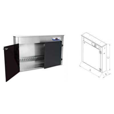 Κατασκευασμένο από ανοξείδωτο ατσάλι. Η λάμπα υπεριώδους ακτινοβολίας UV διατηρεί όλα τα μαχαίρια και άλλα εργαλεία αποστειρωμένα και απαλλαγμένα από βακτήρια και μικρόβια. Χρονοδιακόπτης: 0-120 λεπτά. Πόρτες από πλεξιγκλάς. Ιδανικός για κρεοπωλεία, Super Markets, Βιομηχανίες κρεάτων, ξενοδοχεία και καταστήματα πώλησης τροφίμων.